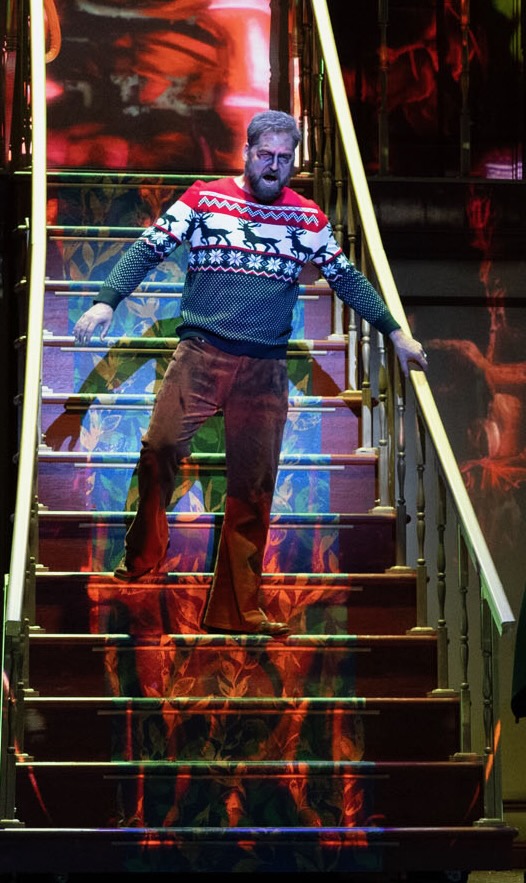Of particular note was Christopher Clayton as Mark Torrance. His dark, full-bodied baritone dominated over the other voices in the insane, grotesque New Year’s Eve party and he was an ominous, sinister presence as he kept urging his son to murder Wendy and Danny.