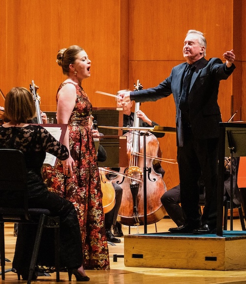 Stagg was also the soloist in the first half, in Mozart’s early Exsultate, jubilate. She showed herself to be an excellent interpreter of Mozart, singing the florid passages with a clear voice. Her voice has power and depth, and she handled the many leaps from low to high notes with ease, never struggling with the extremes of her range under Conlon’s idiomatic direction.