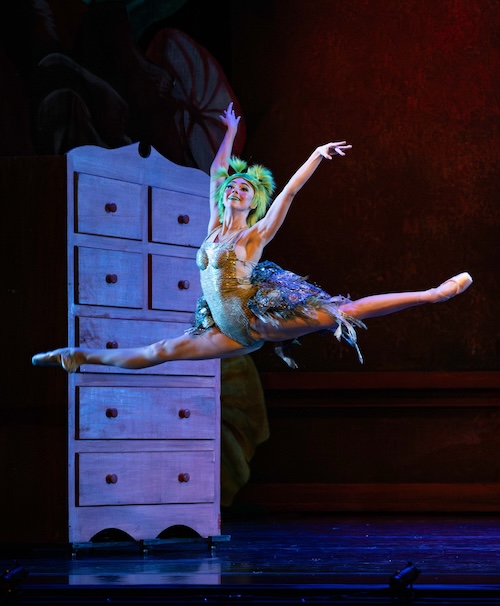 William Lynch as Peter Pan was a powerhouse of strength, and even when his character was sleeping, you could feel the dynamism waiting to be released. Peter’s choreography— whether soloing or as a partner—was a non-stop series of jumps, leaps, and pirouettes. His Act I pas de deux with Wendy featured a series of lifts that ingeniously varied in height and shape, making the moment when Wendy and her brothers first fly feel like the natural evolution of dance.